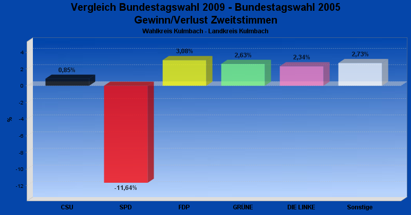 | Partei | Zweitstimmen 2009 | Prozent 2009 | Zweitstimmen 2005 | Prozent 2005 | |